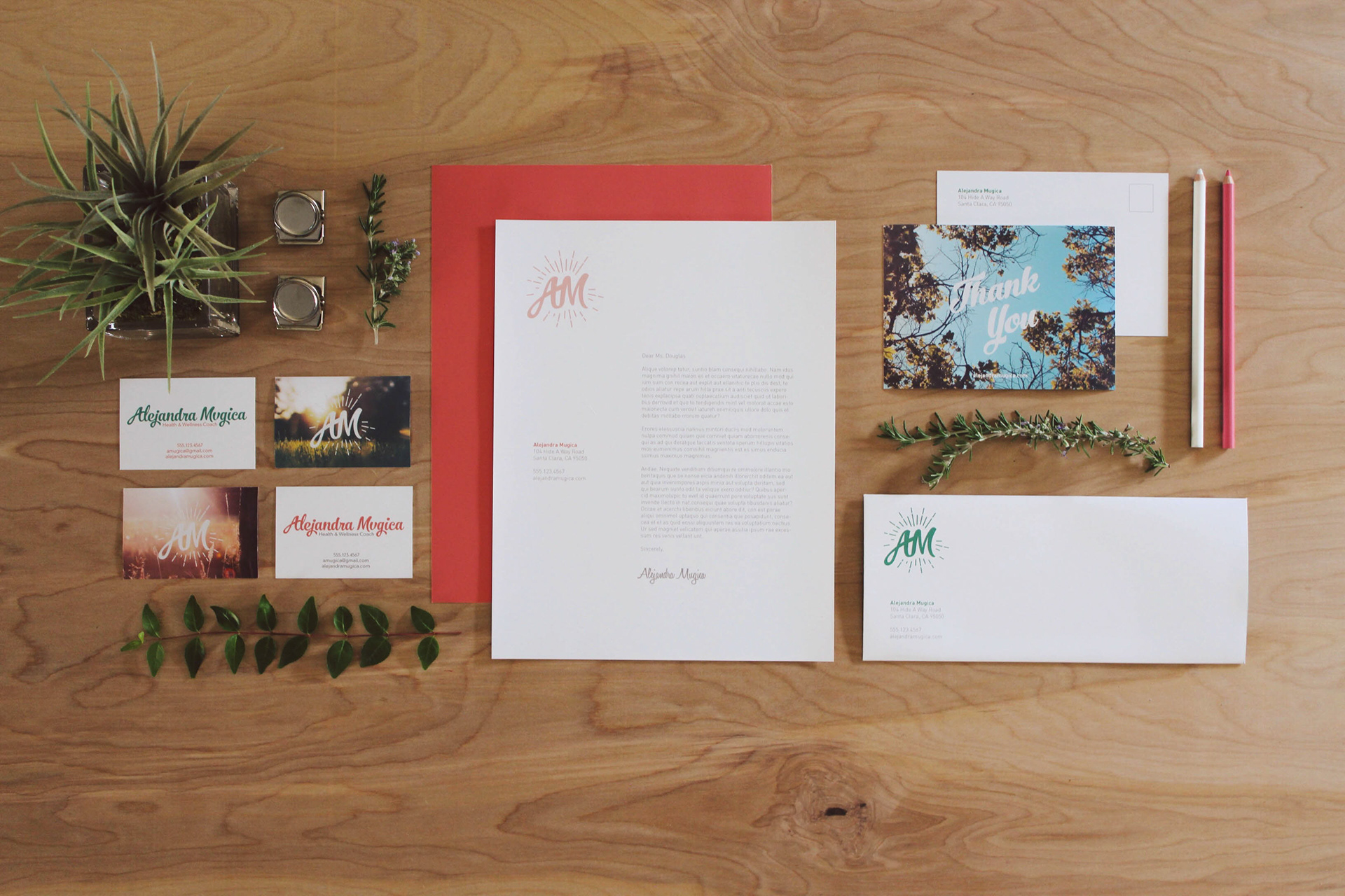Brief: Develop a brand for Alejandra Mugica's health and wellness coaching services. Solution: I was approached by a close friend to help create a brand for her one-on-one health couching business. Alejandra Mugica's vision was to have a brand that reflected the positive and enlightening feeling a person feels when they are living happy and healthy lifestyles, especially young women (age 21-33) who hope to be mothers in the future. When creating this brand I wanted to reflect the rejuvenating feeling a person receives when they decide to live healthier lives. Sprouting from that concept, I used the idea of new mornings as the basis of the brand. Mornings represent new beginnings with every new day comes an opportunity for a fresh start. Alejandra Mugica's health coaching services will provide women with the opportunity to take advantage of every new day by offering a daily advice blog, exclusive newsletters, and one-on-one coaching advice services.
